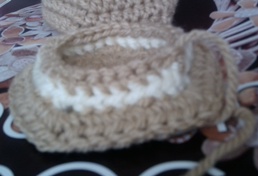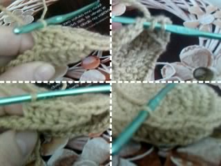Udělám dvě řetízkové oka a háčkuji dokola polosloupky, ukončím pevným okem.