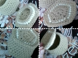 Víko je stejné jako dno. Jakmile mám dno, obrátím práci na rub. Aby víčko pěkně drželo, udělám si takovou ,,obruč,, která by měla zapadnout do otvoru šperkovnice. Na rubu si promyslím,kde ,,obruč ,,uháčkuji. Začínám tak, že píchnu háček do místa,kde chci začít, podeberu celý sloupek, na háček nahodím základní oko a provleču.