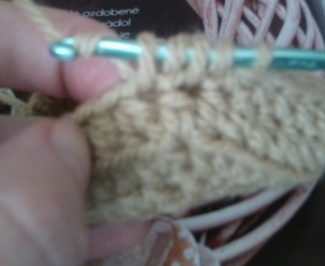 Teď uděláme okraj dna. Někdo dělá okraje tak, že háčkuje za zadní nit. Já podeberu nejen zadní nit, ale i tu hned za ní.